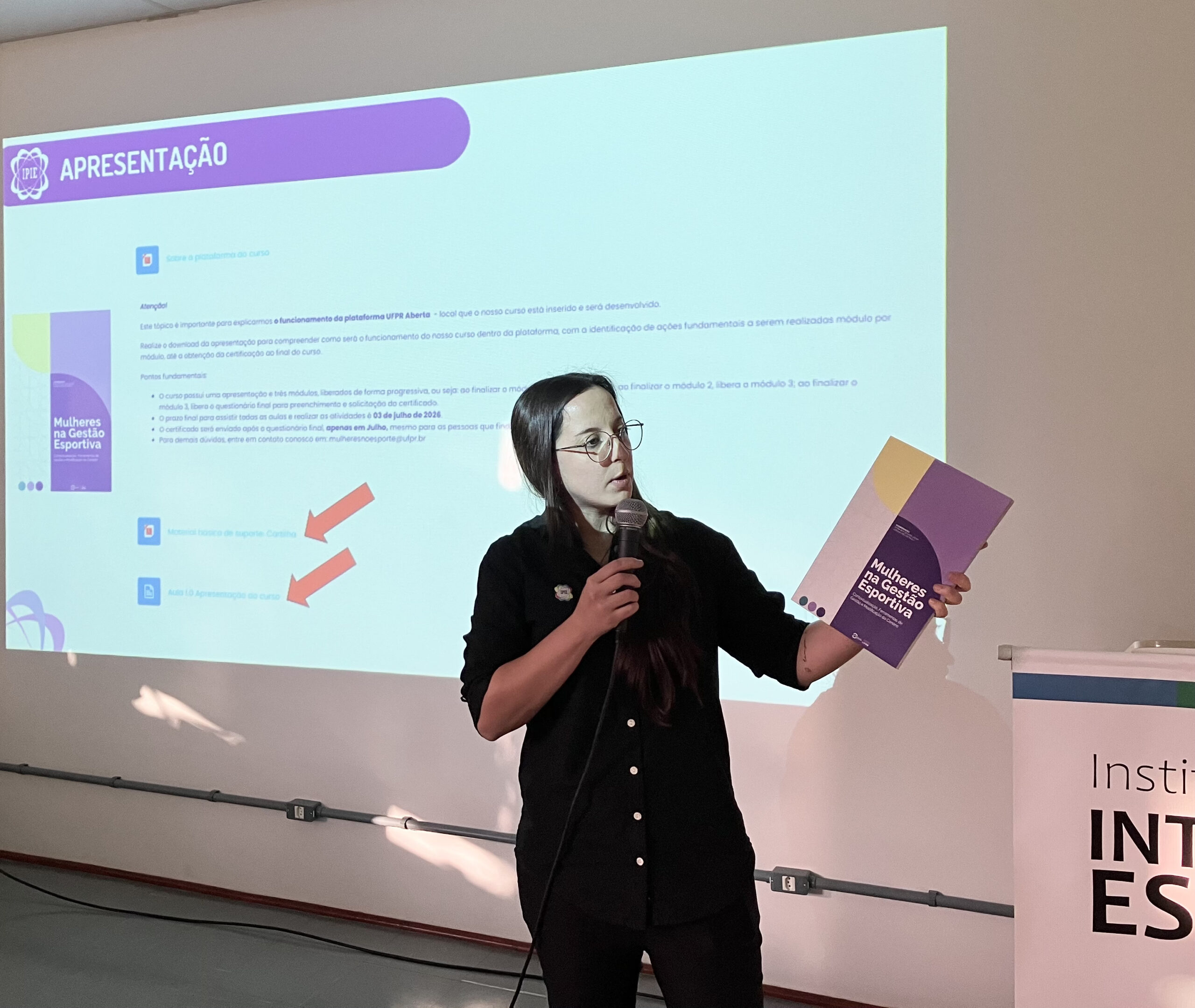 O Instituto de Pesquisa Inteligência Esportiva da Universidade Federal do Paraná (IPIE/UFPR), com o apoio da deputada federal Carol Dartora, lançou no dia 3 de dezembro um curso gratuito destinado à formação de Mulheres Gestoras no Esporte. As inscrições podem ser realizadas até o dia 3 de fevereiro por meio do link: ipie.ufpr.br/mulheres-na-gestao.